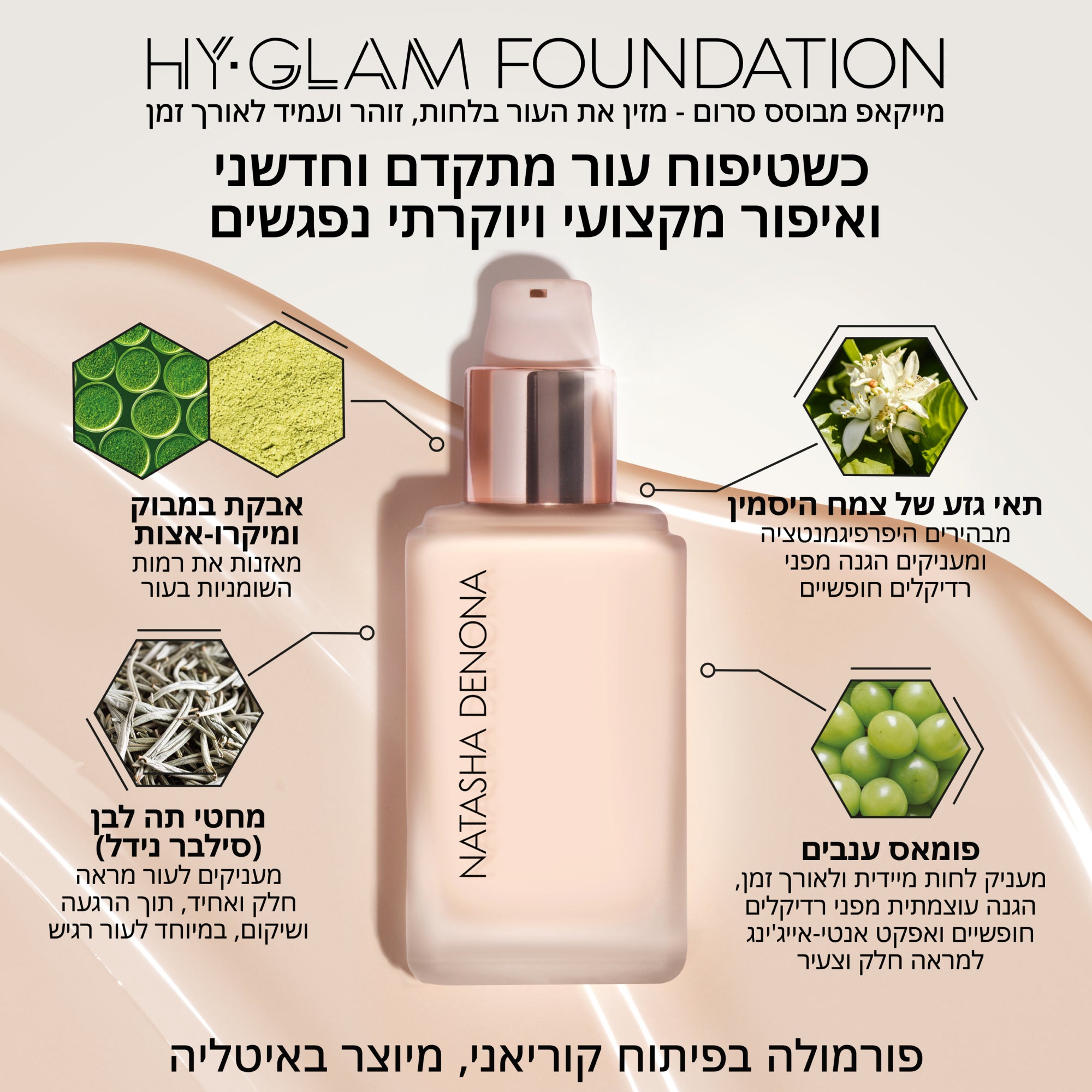 המטרה של נטאשה הייתה לפתח מייקאפ עם גימור טבעי וזוהר, המתאים לכל סוגי העור. מייקאפ שמשפר את מראה העור לאורך זמן ובמקביל, מעניק תחושת קלילות לאורך כל היום.